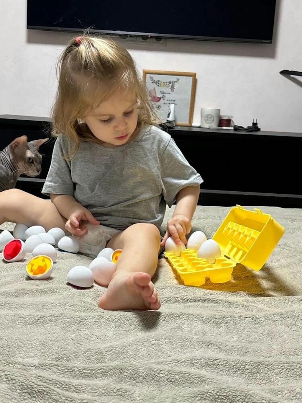 Longer than you'd think. Because matching and sorting never gets old at this age — every session feels new to them.